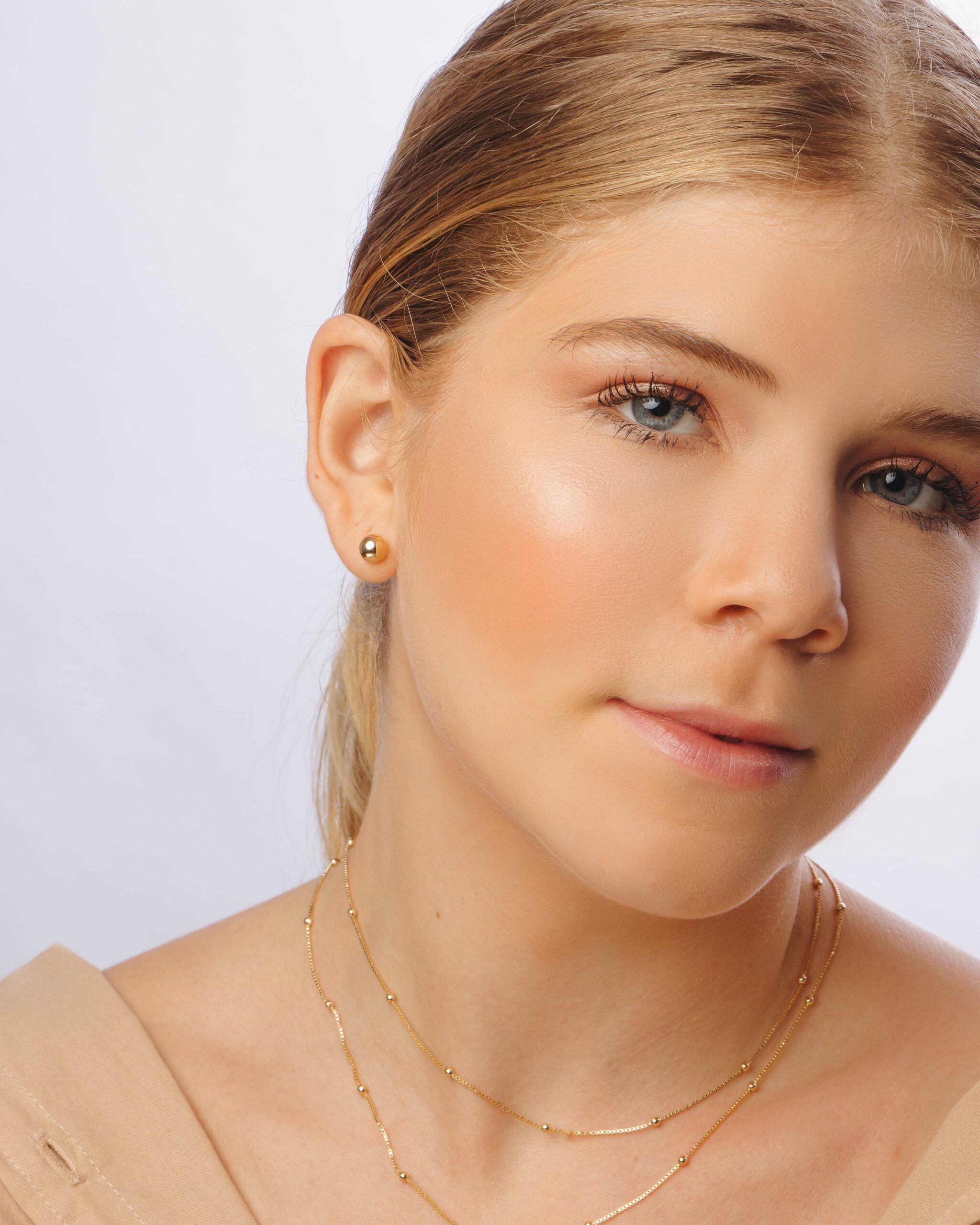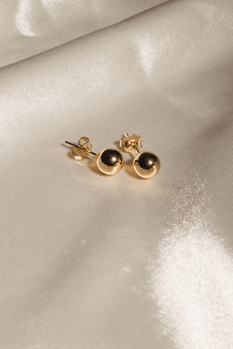 O Brinco Bola banhado a ouro 18k da Kyanitez é uma peça de design minimalista que traduz elegância e delicadeza.