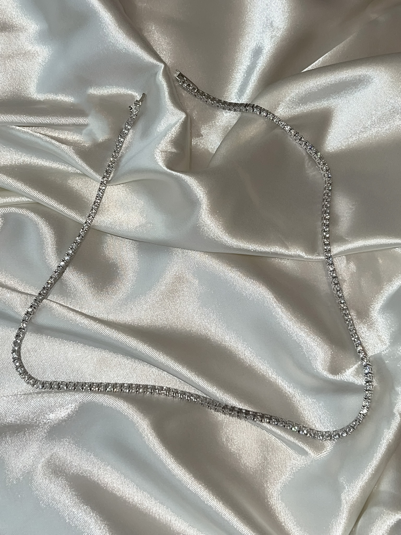 A corrente riviera com zircônias da Kyanitez é uma peça que une brilho intenso e sofisticação em cada detalhe. Confeccionada com materiais de alta qualidade, apresenta uma sequência delicada de zircônias cuidadosamente cravadas, criando um efeito luminoso contínuo que valoriza qualquer produção.